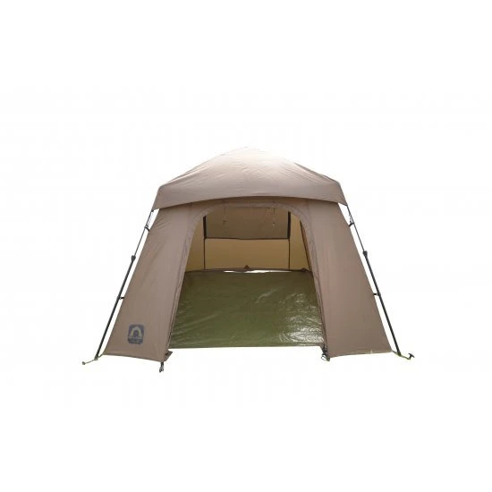 Máxima protección para una sesión larga o durante los calurosos días de verano cuando los mosquitos son un problema constante. Este enorme refugio tiene la característica única de un sistema de montaje rápido que lo hace extremadamente compacto de transportar y extremadamente rápido de instalar y empacar. Tiene grandes mosquiteros a cada lado y un suelo ligero pero resistente.